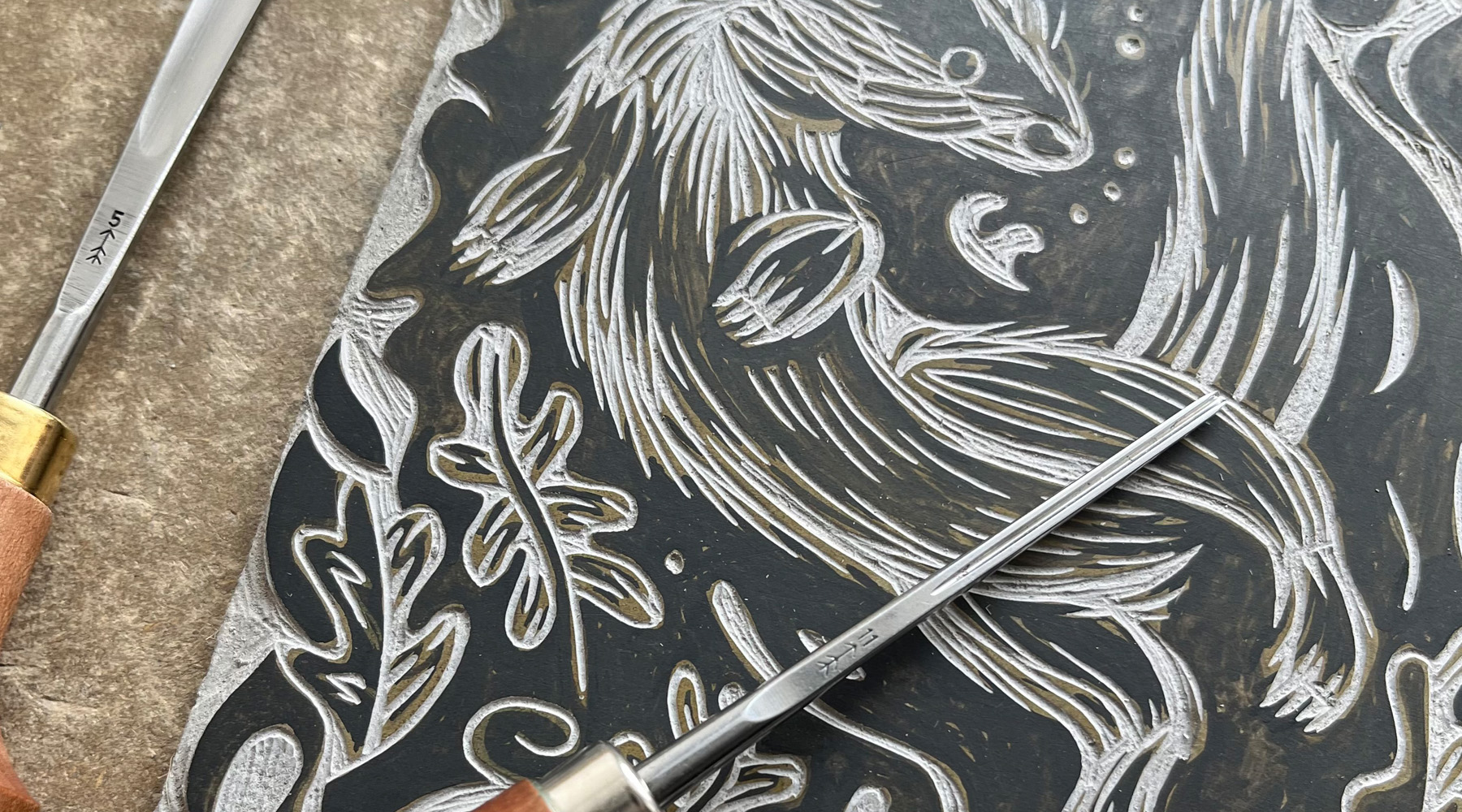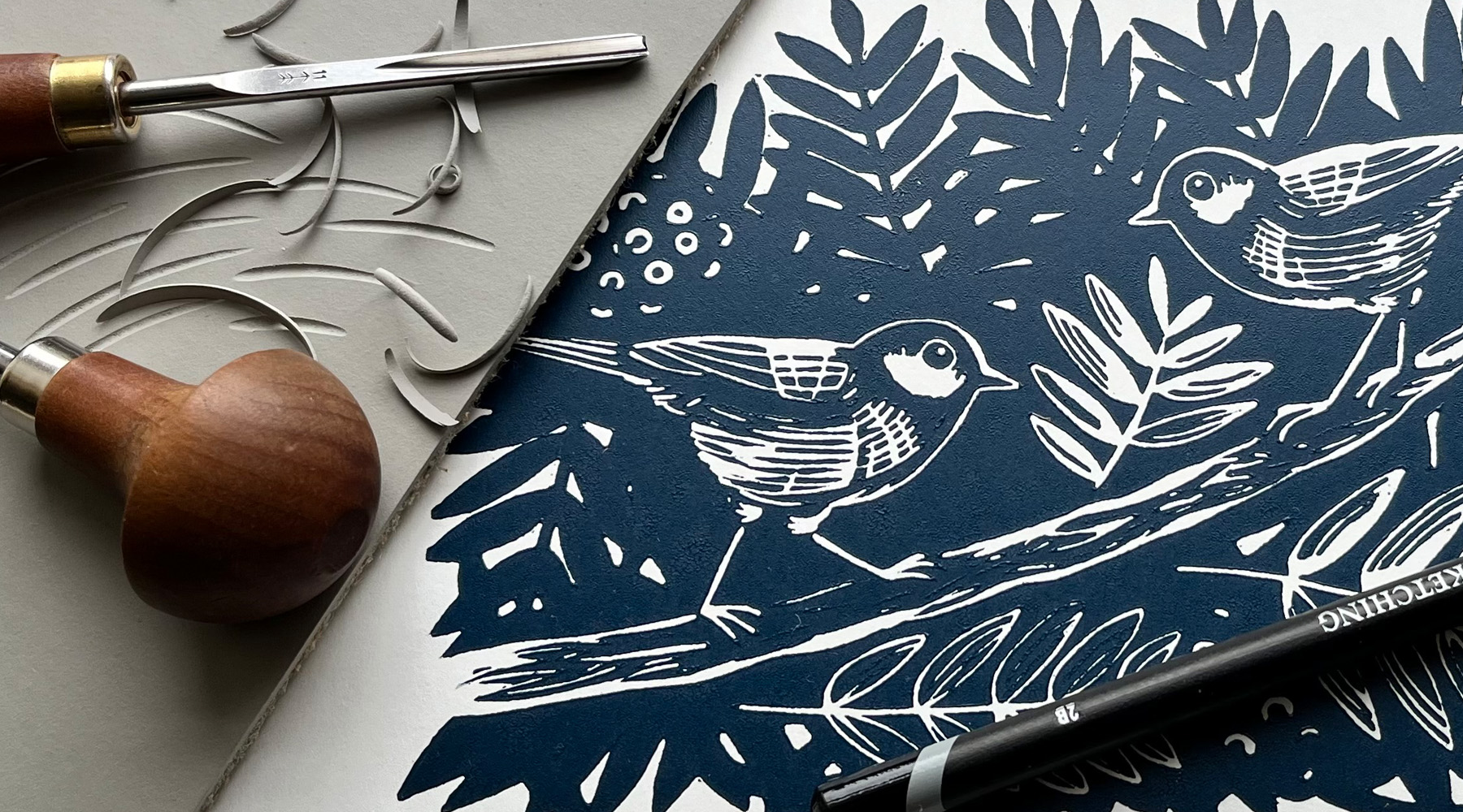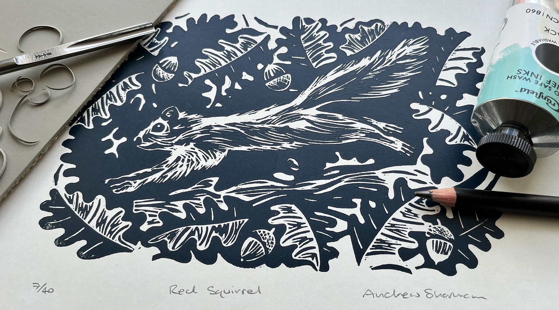 Andrew Sharman is a printmaker and designer based in North East Essex. He creates limited edition relief prints using both wood and lino blocks, with a focus on nature and rural landscapes. His work combines figurative and abstract elements with a degree of experimentation with shape, texture, and colour.