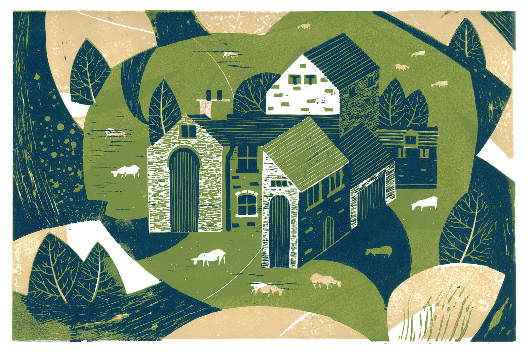 Three colour relief print